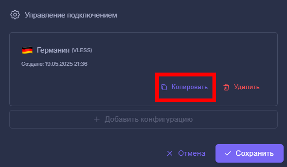 - ΠΠ°Ρ ΠΏΠ΅ΡΠ΅Π½Π΅ΡΠ΅Ρ Π½Π° Π²ΡΠ±ΠΎΡ ΠΏΠΎΠ΄ΠΊΠ»ΡΡΠ΅Π½ΠΈΡ, ΠΌΡ Π½Π°ΠΆΠΈΠΌΠ°Π΅ΠΌ Π½Π° "Π‘ΠΊΠΎΠΏΠΈΡΠΎΠ²Π°ΡΡ ΠΊΠ»ΡΡ"