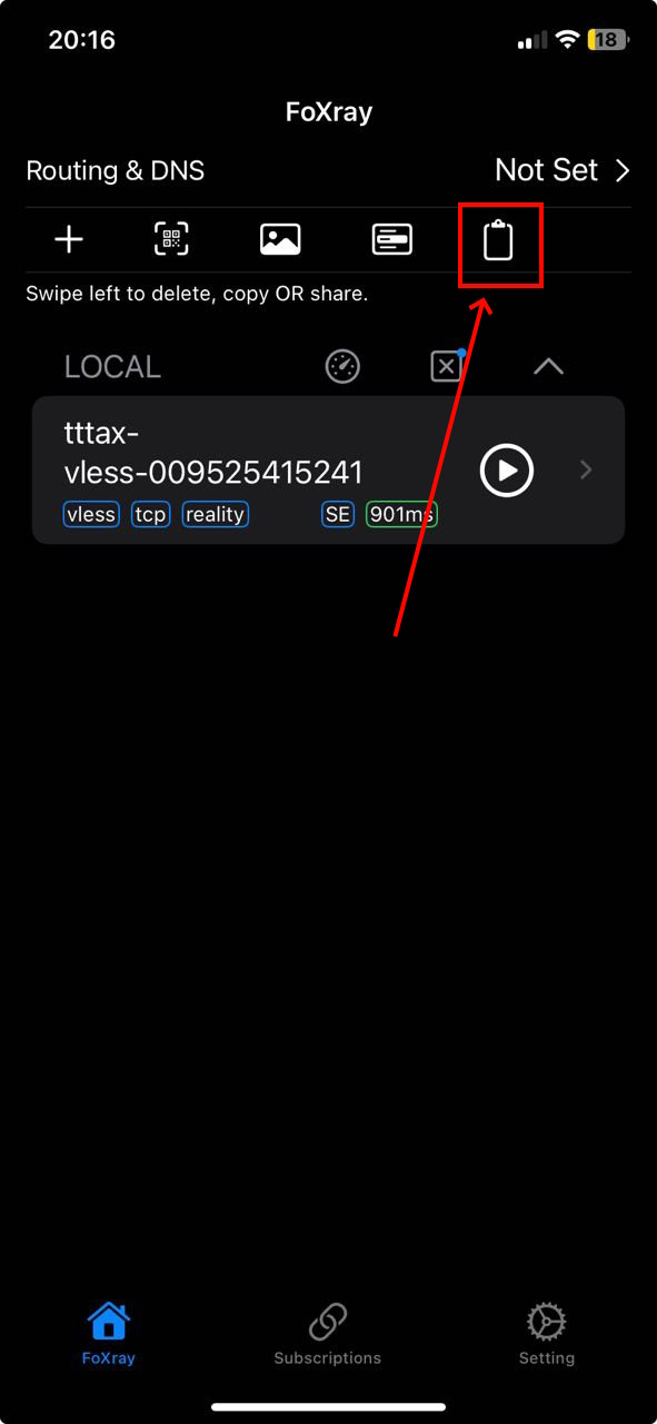 ΠΠ°ΠΌ Π½ΡΠΆΠ½ΠΎ Π·Π°ΠΉΡΠΈ Π² ΠΏΡΠΈΠ»ΠΎΠΆΠ΅Π½ΠΈΠ΅ v2rayTUN ΠΈ ΡΠ²Π΅ΡΡ Ρ ΡΠΏΡΠ°Π²Π° Π½Π°ΠΆΠ°ΡΡ Π½Π° "+", ΠΏΠΎΡΠ»Π΅ Π½Π° "ΠΡΡΠ°Π²ΠΈΡΡ ΠΈΠ· Π±ΡΡΠ΅ΡΠ° ΠΎΠ±ΠΌΠ΅Π½Π°" ΠΠΎΡΠ»Π΅ ΡΡΠΈΡ Π΄Π΅ΠΉΡΡΠ²ΠΈΠΉ ΠΏΡΠΎΡΠΈΠ»Ρ ΠΏΠΎΡΠ²ΠΈΡΡΡ Π² ΠΏΡΠΈΠ»ΠΎΠΆΠ΅Π½ΠΈΠΈ, ΠΎΡΡΠ°Π½Π΅ΡΡΡ ΡΠΎΠ»ΡΠΊΠΎ ΠΏΠΎΠ΄ΠΊΠ»ΡΡΠΈΡΡΡΡ